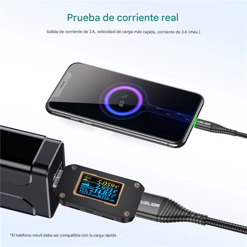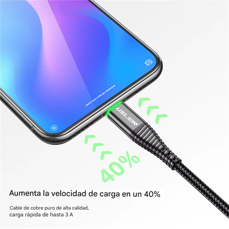 "Carga un 50% más rápido que cables estándar de 2A".