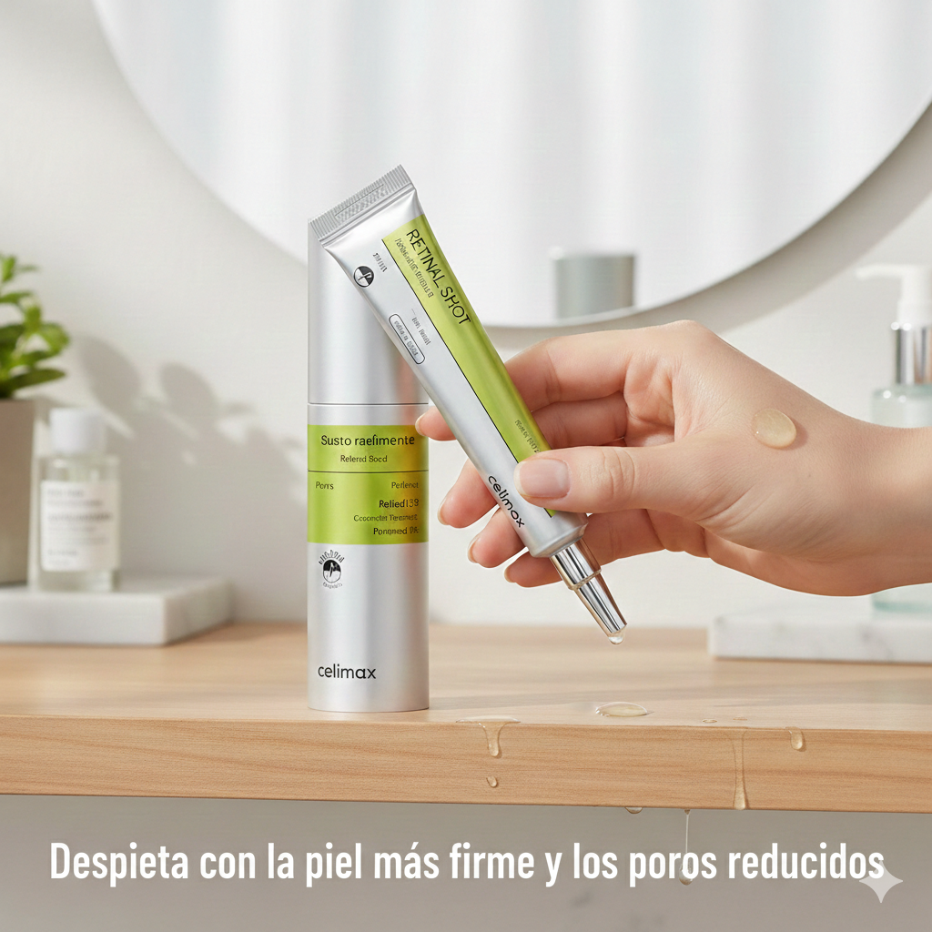 Transforma tu piel mientras duermes con el poder avanzado del Retinal, el ingrediente de última generación que actúa hasta 11 veces más rápido que el retinol tradicional. Este set exclusivo de Celimax combina un suero de alta eficacia y un reforzador de ajuste diseñados para revertir los signos del envejecimiento sin irritar la piel.
