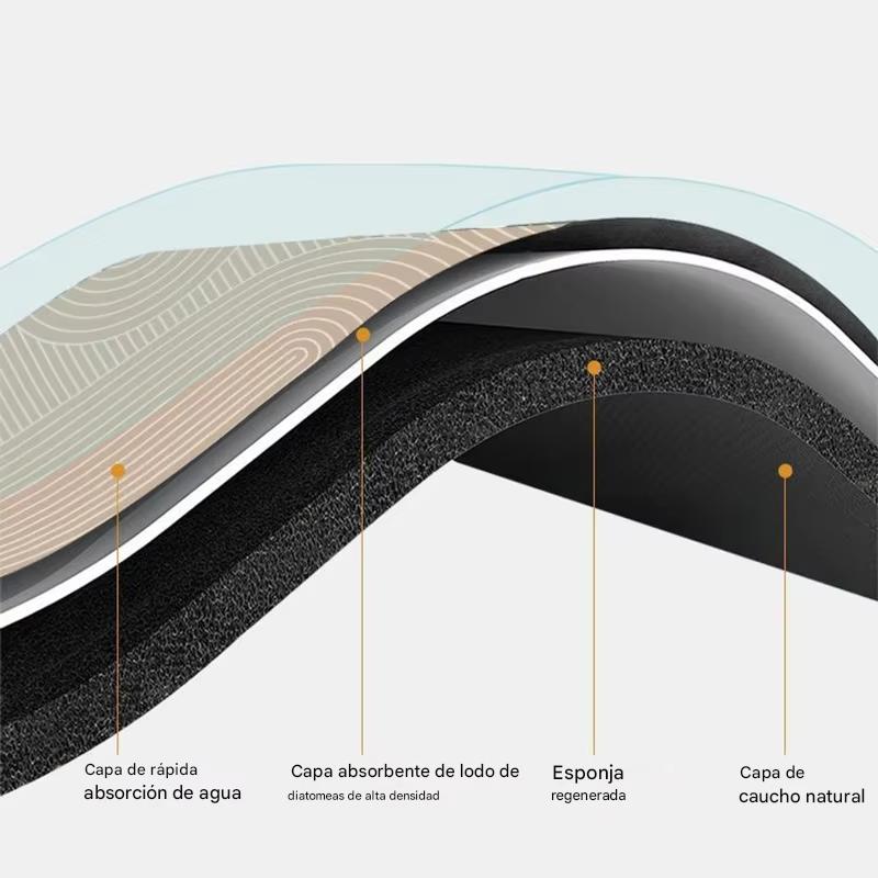 Absorción Instantánea: La superficie de tela de tierra de diatomeas absorbe salpicaduras y humedad al instante, ideal para duchas y baños.