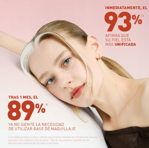 Al salir del tubo, la crema es blanca, pero al contacto con tus dedos, sus microcápsulas de pigmento estallan para adaptarse exactamente a tu tono de piel. El resultado es un acabado "efecto filtro" que difumina imperfecciones, unifica el tono y aporta una luminosidad natural sin rastro de pesadez.