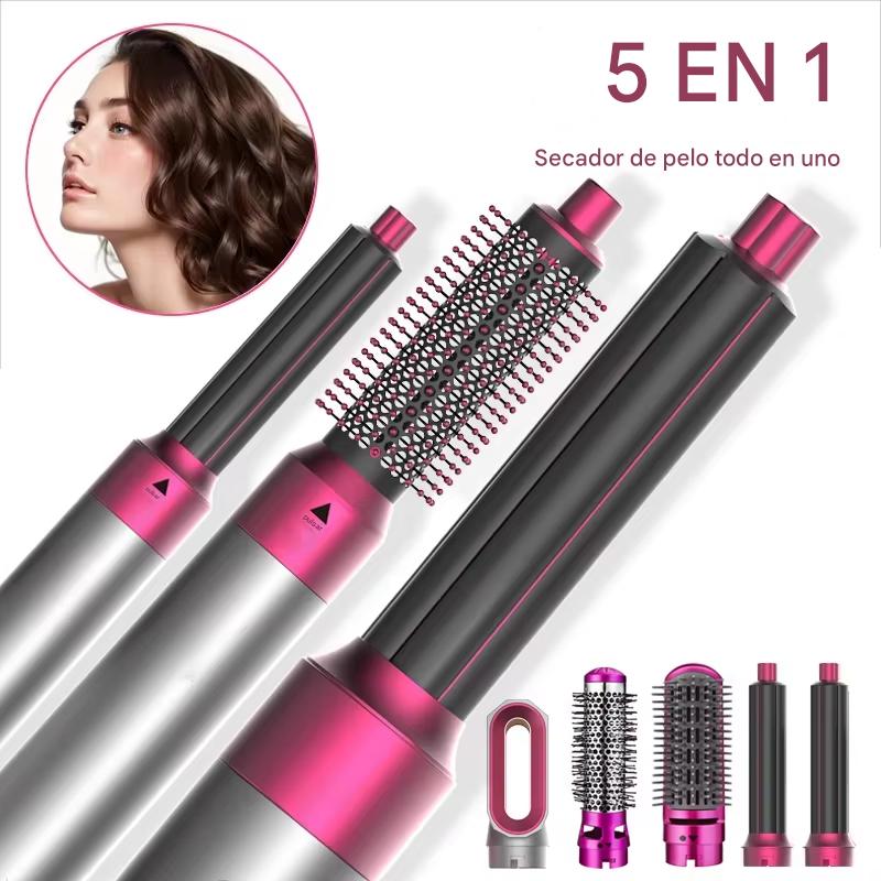 Transforma tu rutina de belleza con el Set de Estilizado 5 en 1 Multifuncional. Diseñado para alisar, rizar, dar volumen y secar el cabello con resultados profesionales desde casa.
