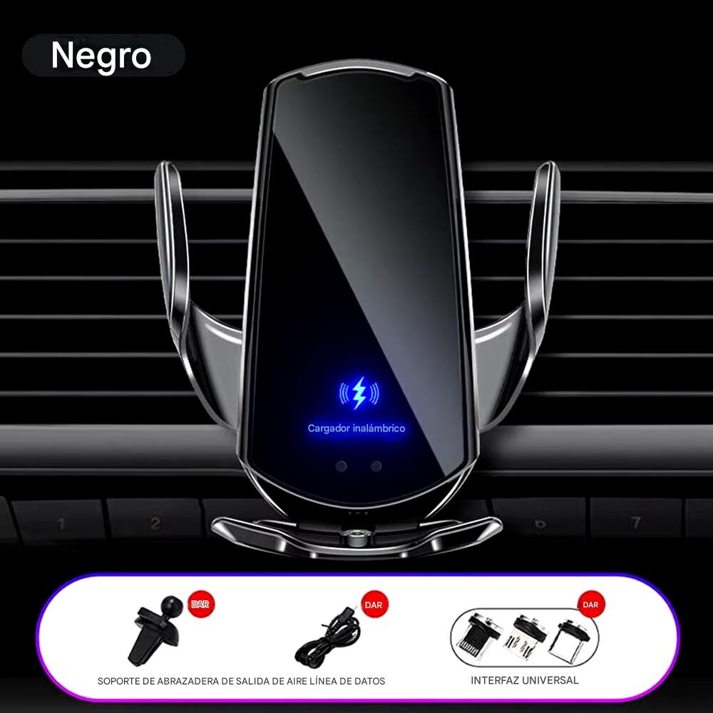 CARGADOR INALÁMBRICO PARA AUTO CON SENSOR INTELIGENTE. 15W Carga Rápida. Soporte Auto ajustable. Compatible con iPhone y Android Qi