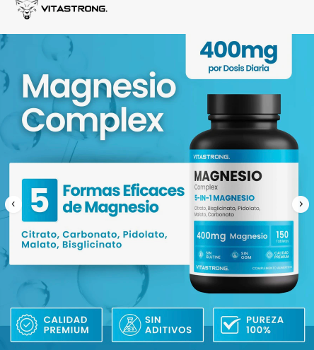✅ Fórmula 5 en 1: Combina bisglicinato (alta absorción), citrato (energía), malato (músculos), pidolato (piel) y carbonato (digestión).