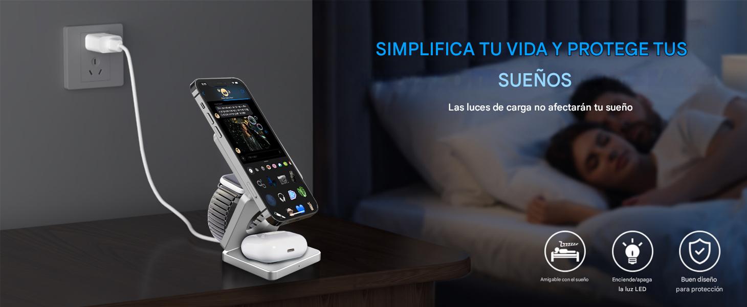 Compatibilidad Total: Apple Watch Series 3-9/Ultra/SE y AirPods 2/3/Pro (y auriculares Qi como Galaxy Buds).