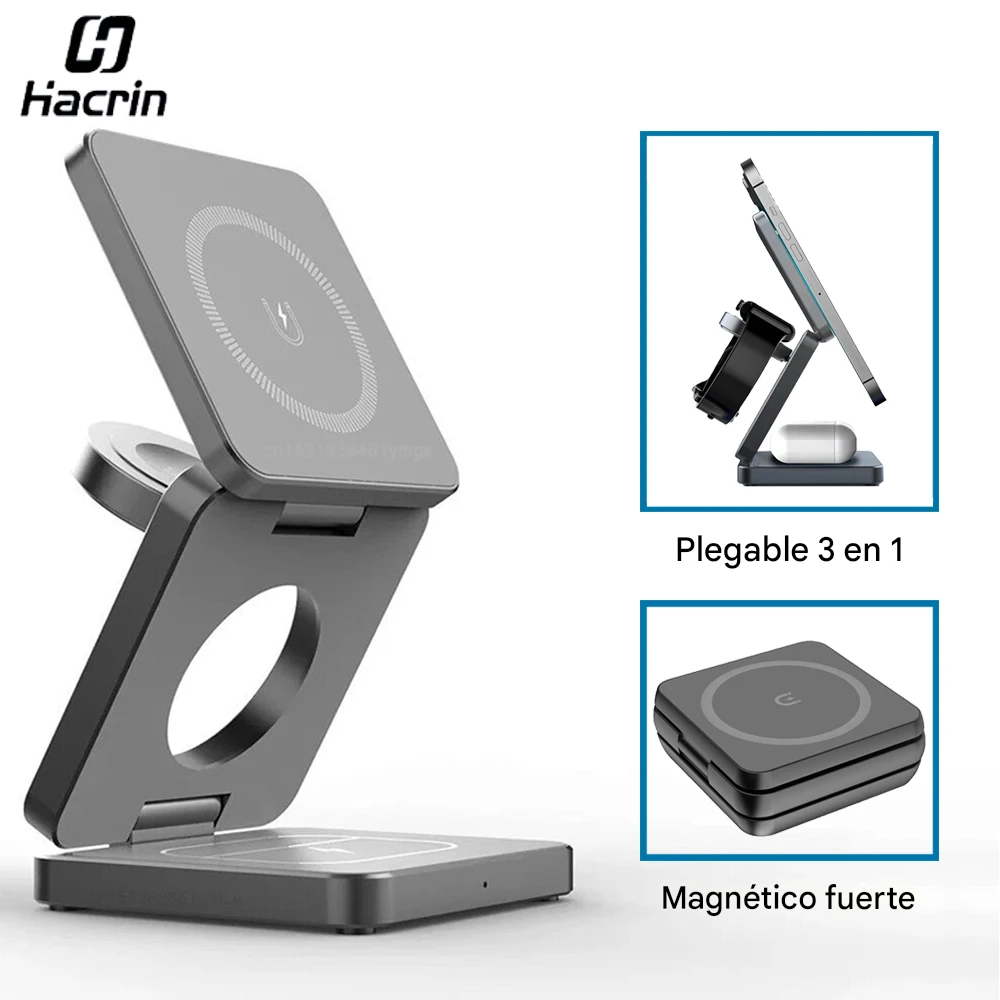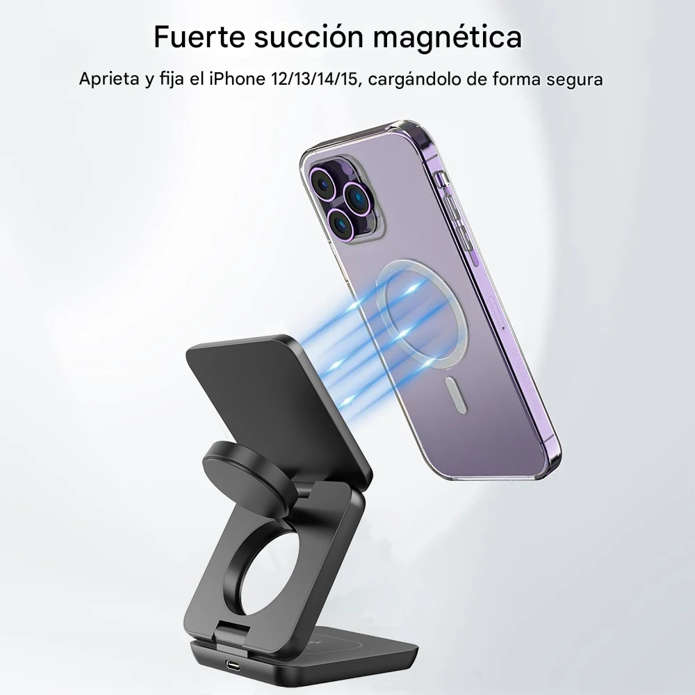 Cargador Inalámbrico 3 en 1 Magnético Plegable para iPhone 15/14/13/12 | Apple Watch 9/8/Ultra | AirPods | 15W Rápido | Certificado CE/FCC"*